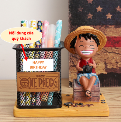 Giỏ bút nhân vật hoạt hình Luffy cầm máy ảnh ngồi trên hòm kho báu, cười dễ thương. Luffy là nhân vật hoạt hình được yêu thích trong bộ phim One Piece của tác giả Eiichiro Oda. Luffy luôn lạc quan, vui vẻ sẽ mang lại tinh thần phấn trấn cho bạn mỗi ngày làm việc và học tập.